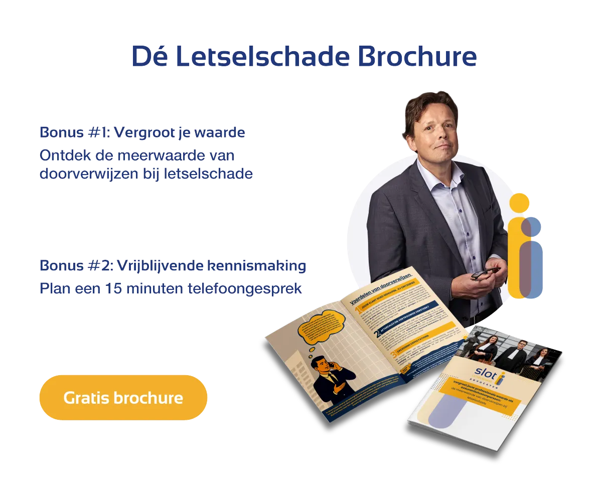 Een betrouwbaar letselschade advocatenkantoor zorgt ervoor dat jouw klant gehoord wordt, snel duidelijkheid krijgt en goed wordt bijgestaan in het volledige traject. Zo weet jij zeker dat jouw klant in goede handen is, zonder dat je zelf in de juridische details hoeft te duiken.
